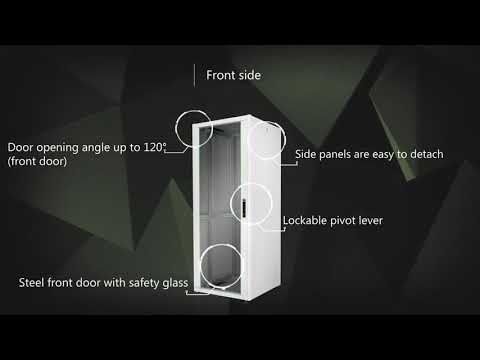 For certain conditions, where the set-up location is difficult to reach, the rack can be disassembled. Doors can be easily detached and the doorstop can be changed from right to left. Furthermore, the roof is ready for the mounting of an air ventilation unit. Each rack contains 2 pairs (4 pieces) of 483 mm (19”) profile rails inside which are galvanized and with height unit marking (countable from both directions). They are variable in-depth and connected with additional depth support bars to realize extensive 483 mm (19”) equipment installations.