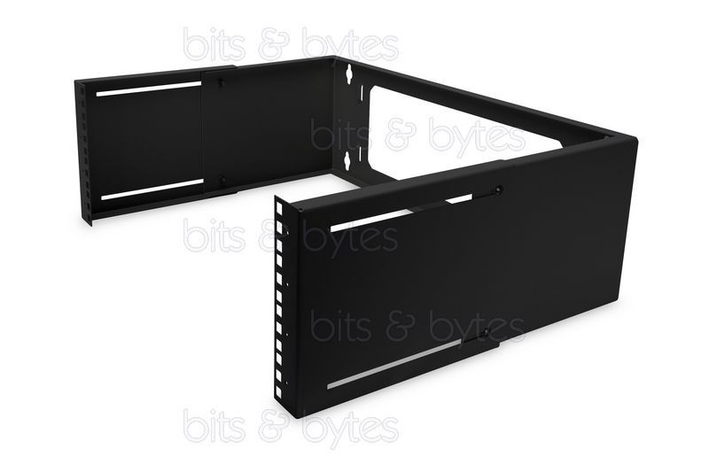 The Wall Mounting Patch Brackets for 483 mm (19”) installations are used for open mountings of 483 mm (19”) components. They are available in several height units to suit your individual space needs. The brackets are adjustable in depth (from 225 mm up to 399 mm) which makes the installation of larger components possible. The rear side has a big cut-out area that can be used to guide cables which come directly from the wall.