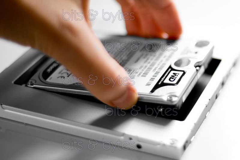 Provide the frame with the original drive aperture and the exchange remains externally unremarkable. The frame corresponds to a shaft height of 9.5 mm and is designed for 2.5" SATA SSDs and HDDs.